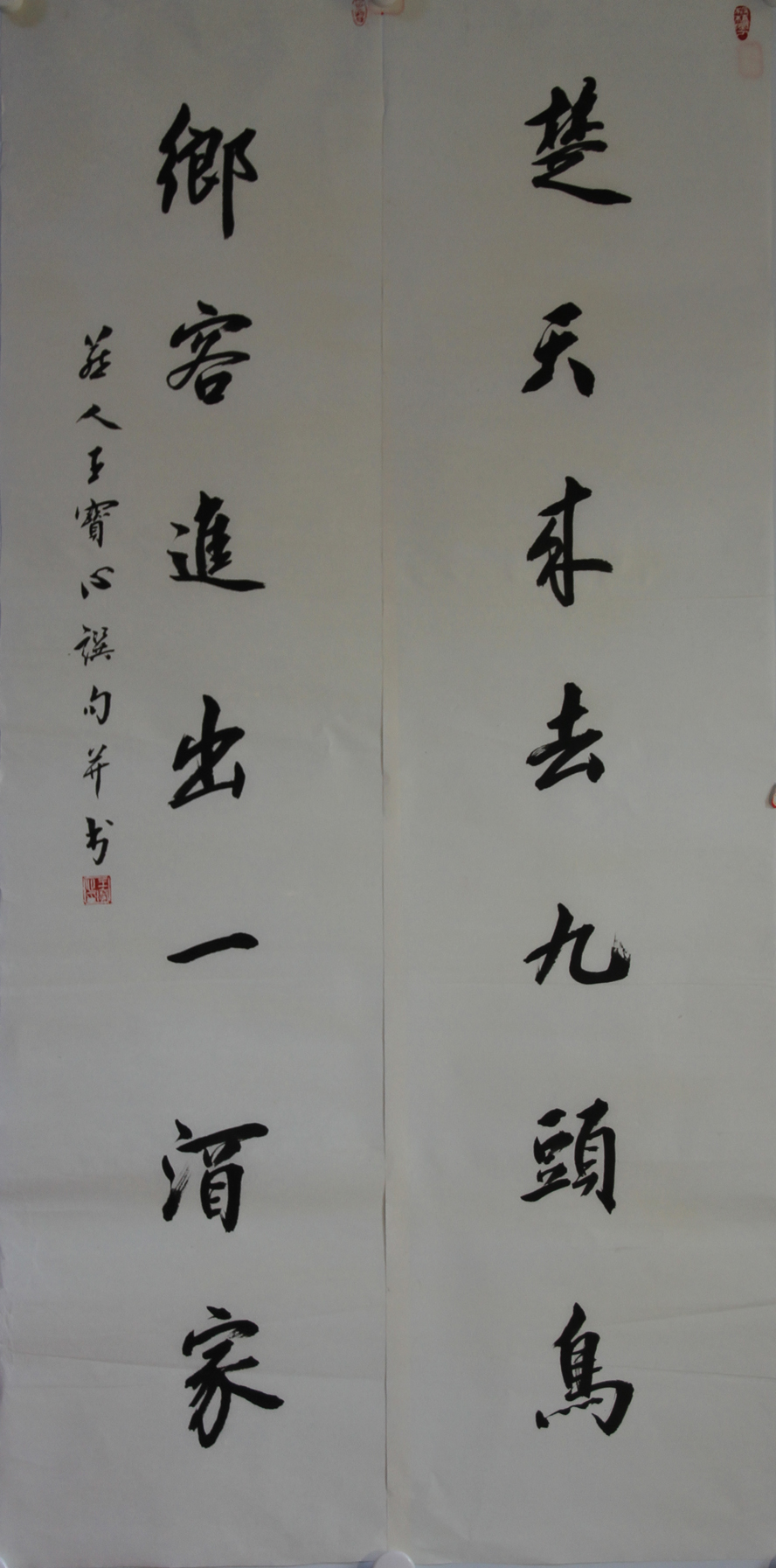 王宝心 1955年生于北京,现任 北京书画艺术院院长。 1971年起学习油画。1973年受康殷先生影响学习书法,擅楷书、行书,且擅诗词楹联,有“三步成诗”之誉。其书风传统、典雅,被誉为当代文人书家。 曾题写央视《东方时空》片头、王府井“老北京风情街”牌楼、“国家奥林匹克公园”、北京地安门“敕建火神庙道观”。 其作品被国家博物馆、人民大会堂、宋庆龄故居等单位收藏,并作为国礼由对外友协赠送给多国元首。 王宝心先生乐善好施,关心社会公益事业,被关工委和中