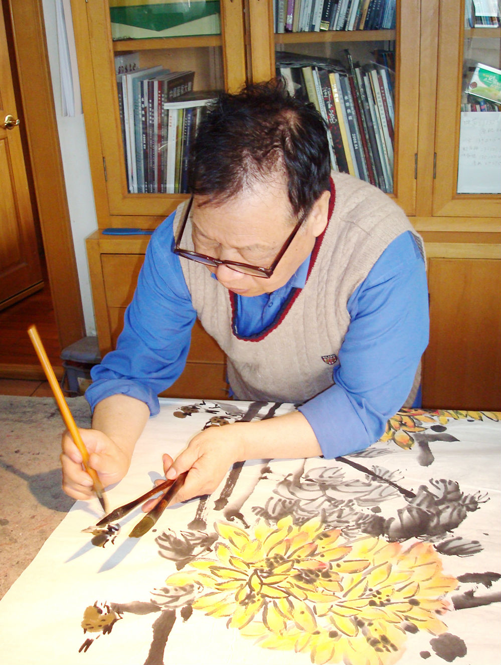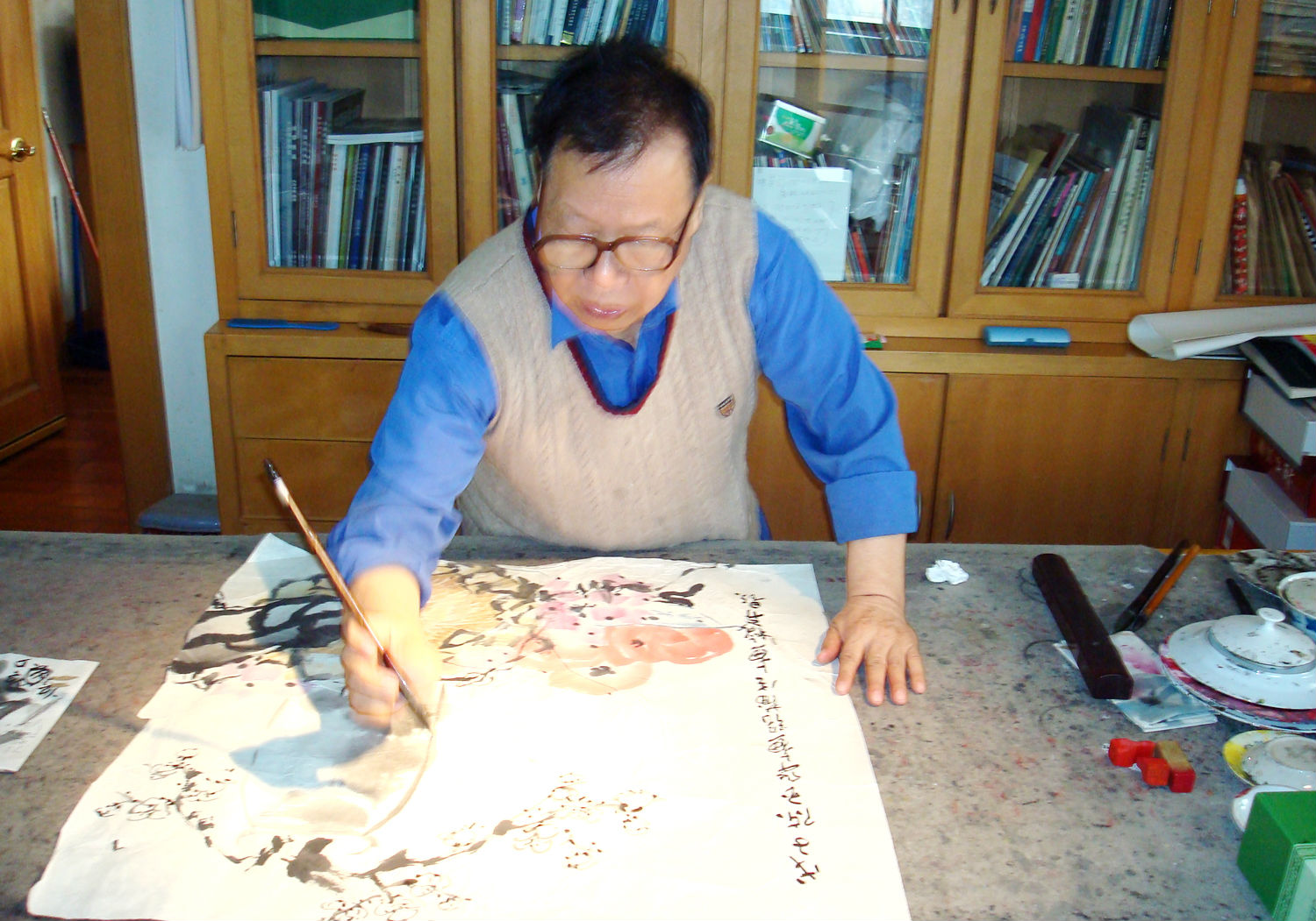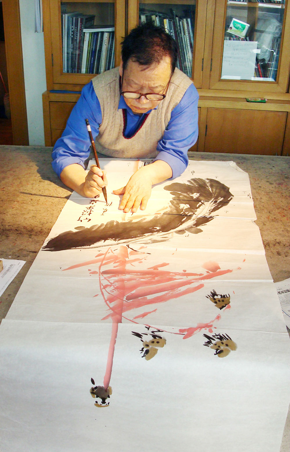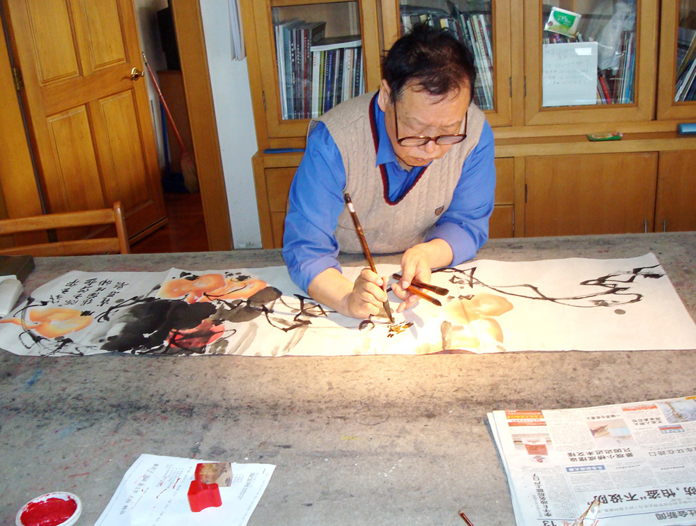 张蒲生在和其他画家创作