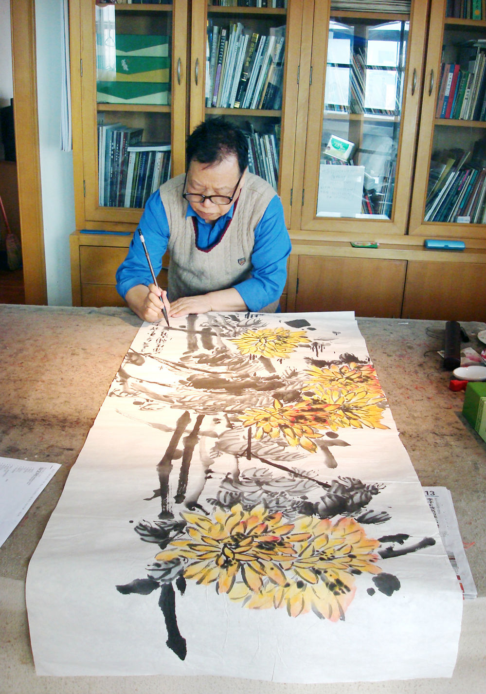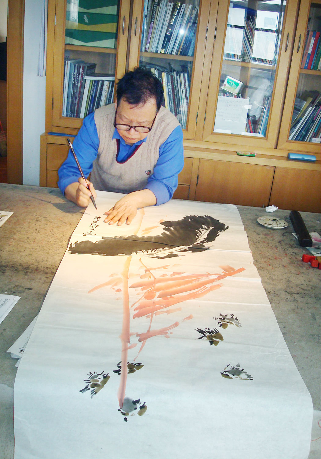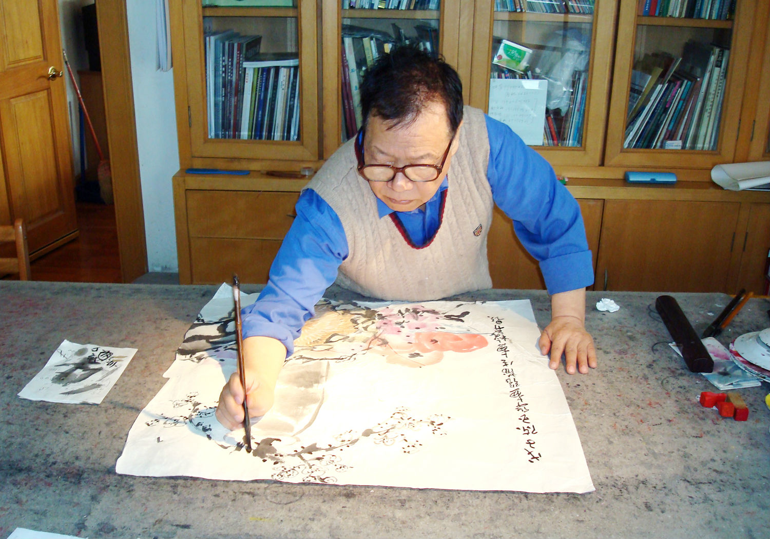 张蒲生在和其他画家创作