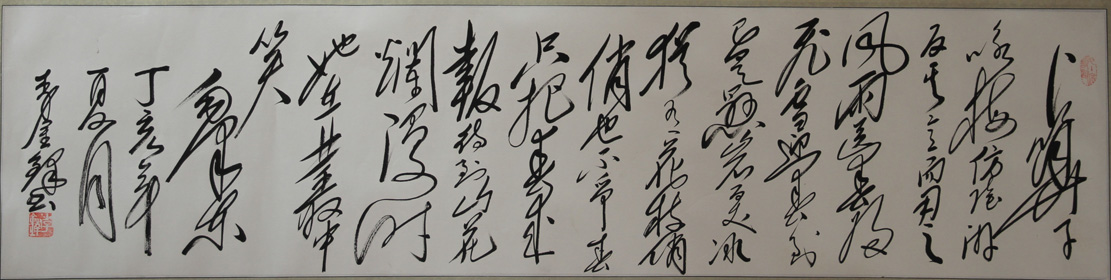 近年先生书写魏碑书风,苍古雄秀,如大将挥阵,自若镇定,只是在以其“毛体”书风表达他自己的心情。他已不满足于照本宣科的去摹仿毛泽东书法,而是在领悟其艺术精髓的同时,努力在探索着一条艰难创作之路。近几年,他陆续精心创作了近百幅反腐倡廉、纪念抗日等题材的作品,师古而不泥古,其笔法之飘逸,结构之宕逸,章法之完美,风格之洒脱,表现出了他广阔的胸怀和大家的风范。原中央顾问委员会常委李德生赠“正党风、顺民意”、全国政协副主席任建新赠“公生明、廉生威”以资勉励。金铎先生在书法艺术上造诣颇深,但他从不自矜,最难能可贵的是能保持着一种平淡的心情,正如《诗品》中所说的:“彦伯《泳史》,虽文体未遒,而鲜明紧健,去凡俗远矣”。